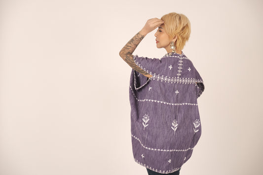 Natural Dye Kimono-Style Jacket with Itneg Embroidery