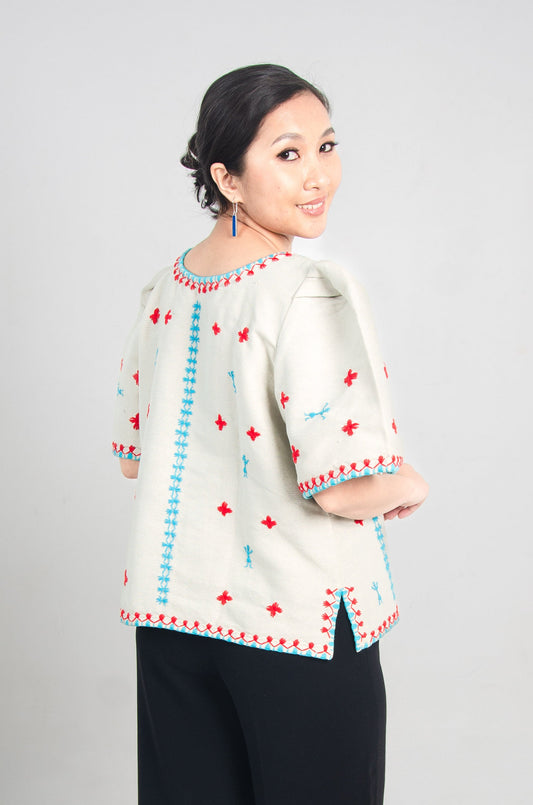 Tiniri Sleeveless Blouse with Itneg Embroidery
