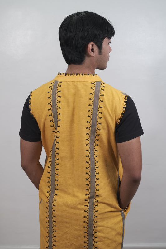 Kantarines Sleeveless Coat in Itneg Embroidery (Yellow and Black)