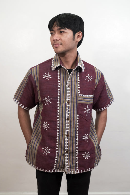 Tiniri Collared Men's Polo with Itneg Embroidery (Maroon Stripes)